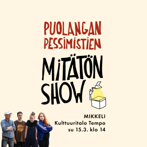 su15maa14:00- 17:00Puolangan Pessimistien Mitätön Show14:00 - 17:00