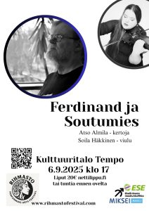 Ferdinand ja Soutumies on kerronnallinen esitys, jossa yhdistyvät kahden erilaisen mutta toisiaan täydentävän teoksen maailmat. Illan aikana kuullaan muun muassa Alan Ridoutin sävellys Ferdinand härkä sekä otteita Atso Almilan Sodan soutumiehestä. Molemmat teokset lähestyvät ihmisyyden ja valintojen teemoja – yksi lempeän symbolisella tavalla, toinen historian ja inhimillisen kokemuksen kautta.